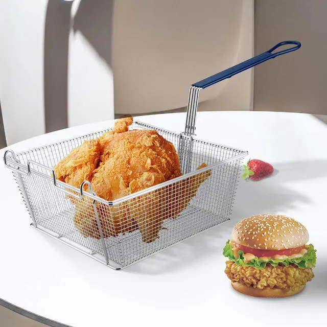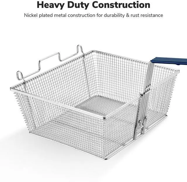 - Easy Draining - Features a hook on the basket for conveniently hanging it up on the fryer's bar to drain oil effectively, along with a hole on the bottom of the handle for easy hanging when not in use