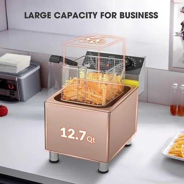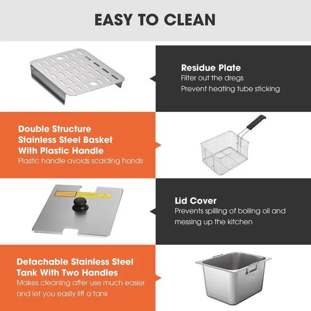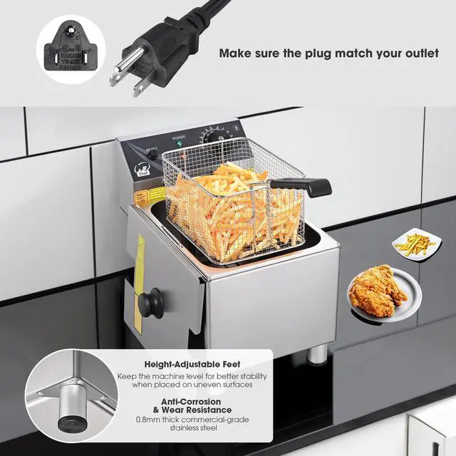 - 1800W Electric Deep with long U-shaped heating tube provides fast heating for frying large batches of food in minutes, perfect for home & commercial use such as restaurant, food truck, snack bar, buffet to make chips, onion rings, fried fish or chicken, French fries, etc.