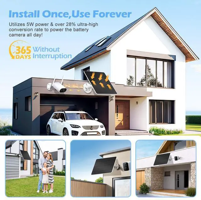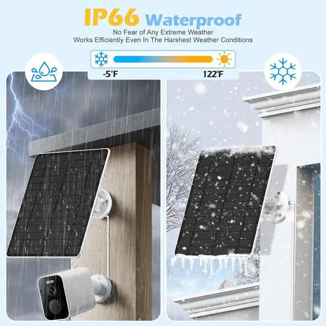 Our solar panel for security camera reaches IP65 waterproof grade, work perfectly in rain, snow, thunderstorms and other kinds of bad weather