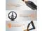 Equipped with a shovel, this tool allows soil excavation upon metal detection, enabling deeper search and retrieval. Its design facilitates efficient ground exploration, enhancing the metal detection process.