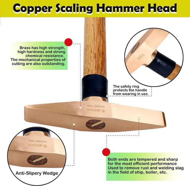 USES: Precision casting process is adopted, with high density and strong hardness;Used for rust removal and welding slag removal in ship and electric welding processing;Designed to fit the grip of the users hand ensuring comfort & control;The head is filled with glue, which is firm and durable