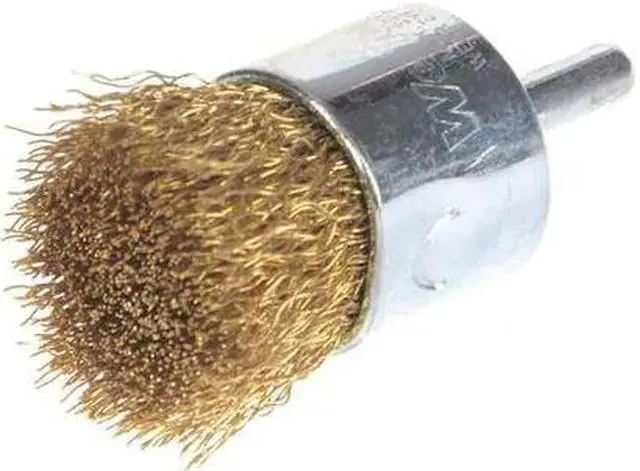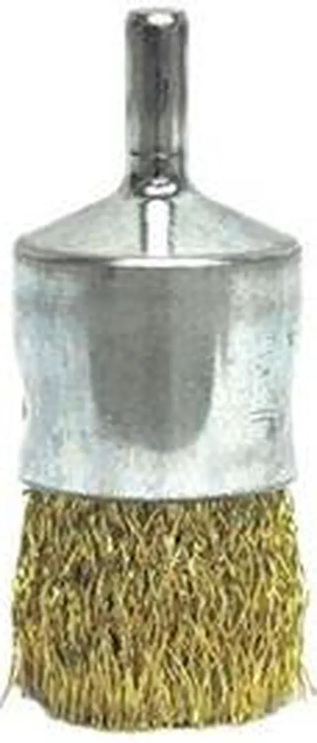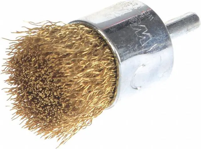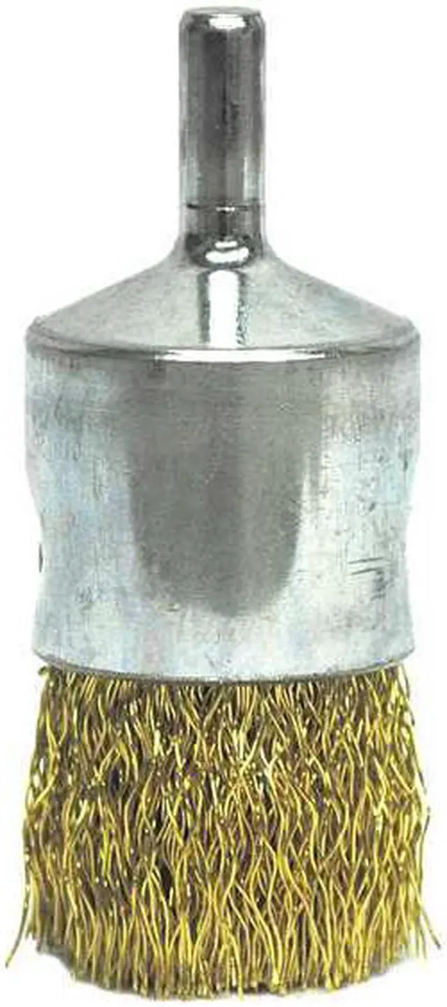 End Brush, Product Type End Brush, Quick Change System Not Applicable, Bristle Type Crimped Wire, Bristle Material Brass, Brush Dia. 1 in, Wire Dia. 0.012 in, Bristle Length 1 in, Grit Not Applicable, Overall Length 3 in, Compatible Tool Type Straight Grinder, Drill, Impact Driver, Pencil Grinder, Color Silver, Primary Material Application Brass, Connector Type Round Shank, Connector Size 1/4 in, Operating Speed - Maximum 22, 000 RPM, Shank Length 5/8 in. This item has been restricted from sale in the following state (s): []