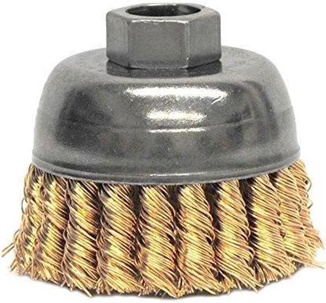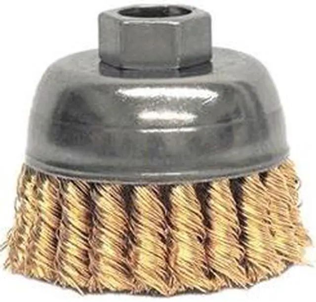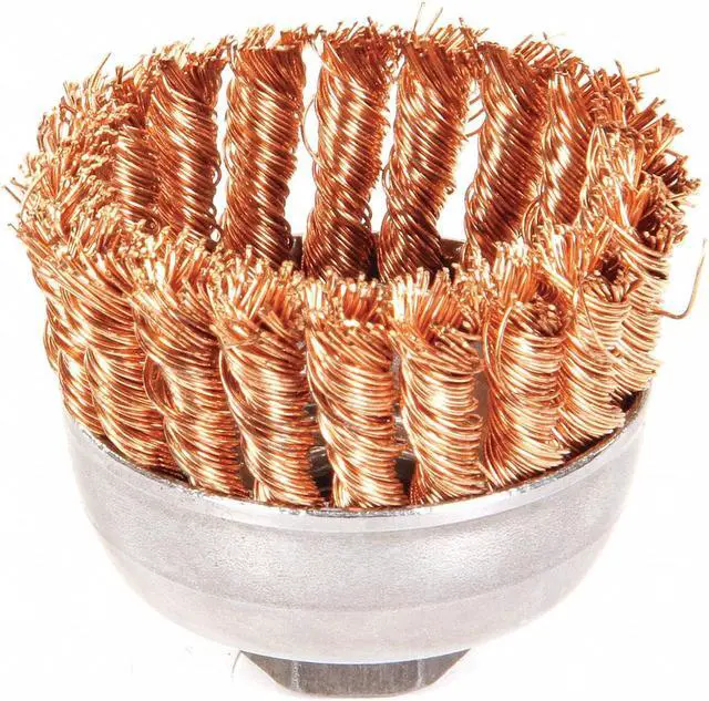 Cup Brush, Product Type Cup Brush, Quick Change System Not Applicable, Bristle Type Standard Twist Knot Wire, Bristle Material Bronze, Brush Dia. 2 3/4 in, Wire Dia. 0.02 in, Bristle Length 1 in, Grit Not Applicable, Overall Length 2 5/8 in, Compatible Tool Type Right-Angle Grinder, Color Silver, Primary Material Application Carbon Steel, Connector Type Threaded Hole, Connector Size 5/8 In. -11, Operating Speed - Maximum 14, 000 RPM, Shank Length Not Applicable. This item has been restricted from sale in the following state (s): []