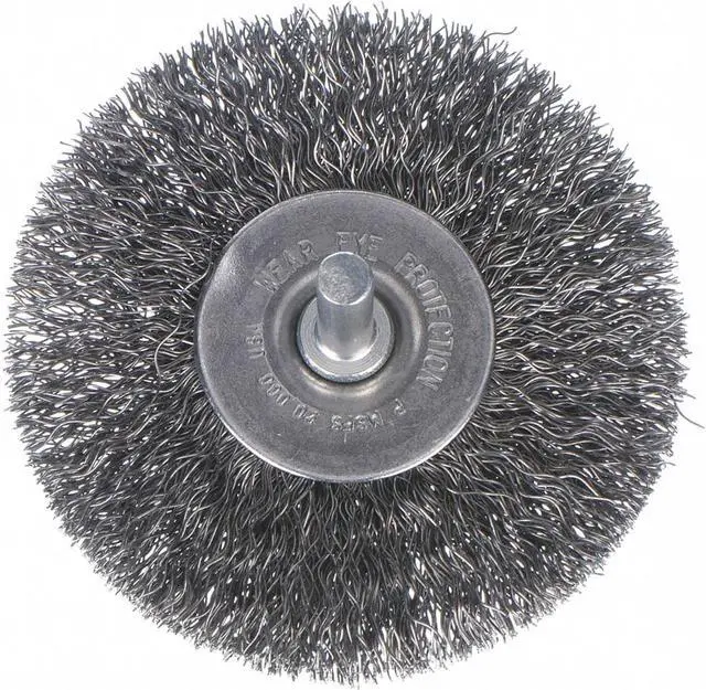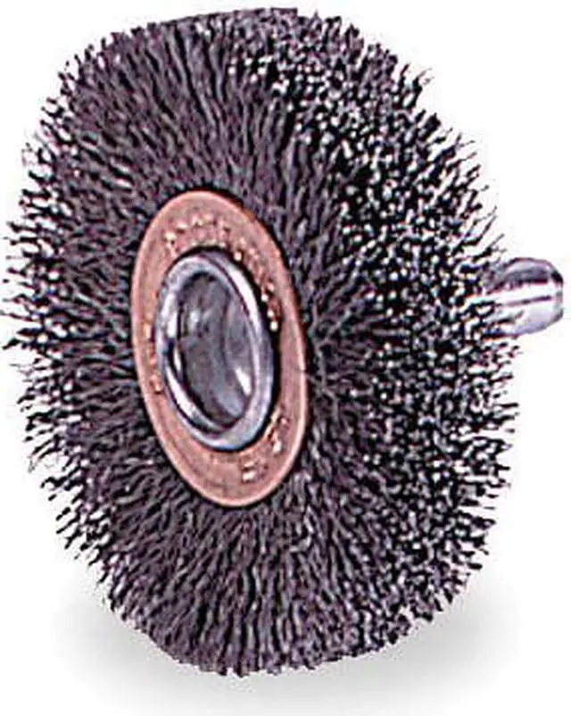 Wire Wheel Brush, Bristle Type Crimped Wire, Product Type Wire Wheel Brush, Bristle Material Carbon Steel, Brush Dia. 3 in, Grit Not Applicable, Face Width 5/8 in, Bristle Diameter 0.012 in, Bristle Length 13/16 in, Compatible Tool Type Die Grinder, Drill Press, Pencil Grinder, Straight Grinder, Primary Material Application Carbon Steel, Connector Type Round Shank, Connector Size 1/4 in, Operating Speed - Maximum 20, 000 RPM, Shank Length 1/4 in, Color Not Applicable