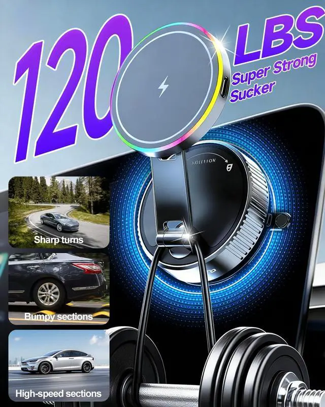 for Magsafe Car Mount Charger, 15W Fast Charging Wireless Car Charger [120LBS Suction &3800gf Magnet] 780° Adjustable, Vacuum Magnetic Phone Holder for Your Car for iPhone & Android, Metal Stand Rotor