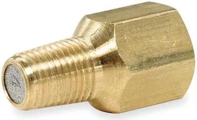 Pressure Gauge Snubber, Connection Size 1/4 in, Connection Type NPT, Compatible Liquids and Gases Heavy Oil, Light Oil, Water, Operating Temperature Range Not Rated, Maximum Operating Pressure 1, 500 psi, Application Non-Potable Water Applications, Material Brass, Snubber Type Filter, Corrosion Resistant Not Corrosion Resistant, Element Material Brass, Head Shape Hexagon, Head Size 3/4 in, Number of Pistons Not Applicable, Overall Length 1 1/2 in. This item has been restricted from sale in the following state (s): []