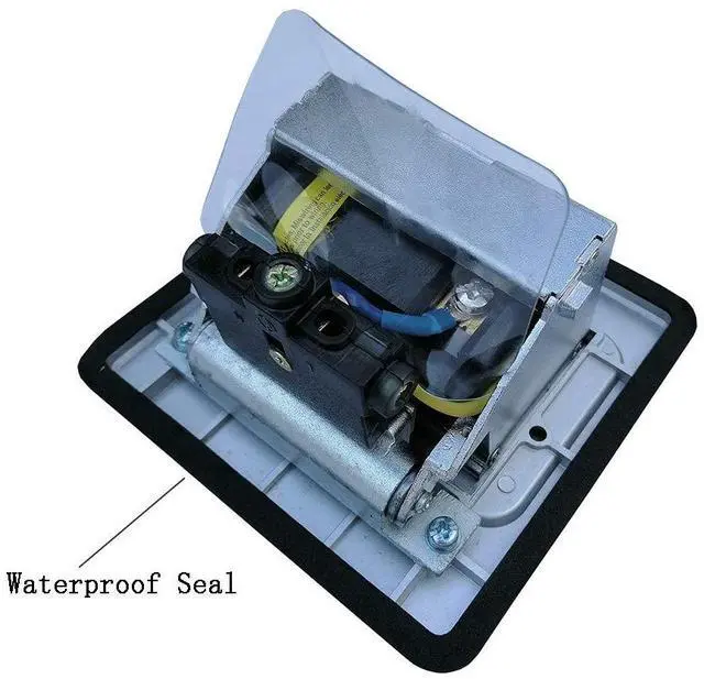 It can be installed in floor, countertop, deck, table, desk tops in kitchen, living room, office, public area, etc. Waterproof gasket features IP44 water rating.