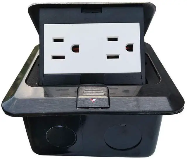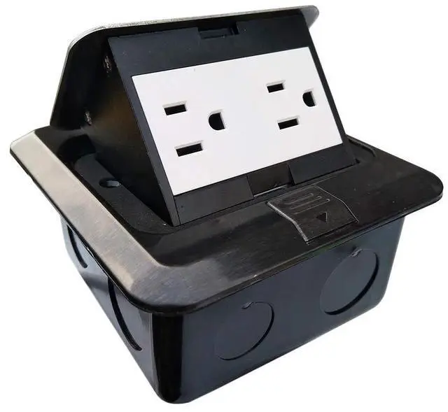 A pop up outlet box is hidden in your countertop or floor when closed, all you see is a stylish black top. When you push the button the top tilts open revealing the outlets.
