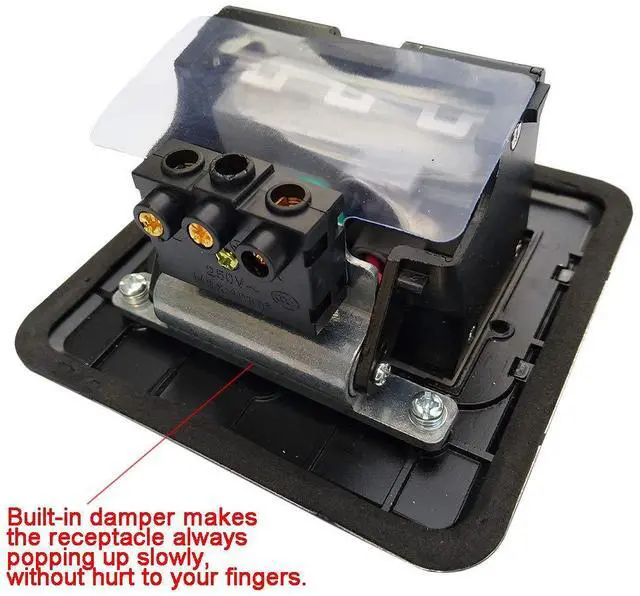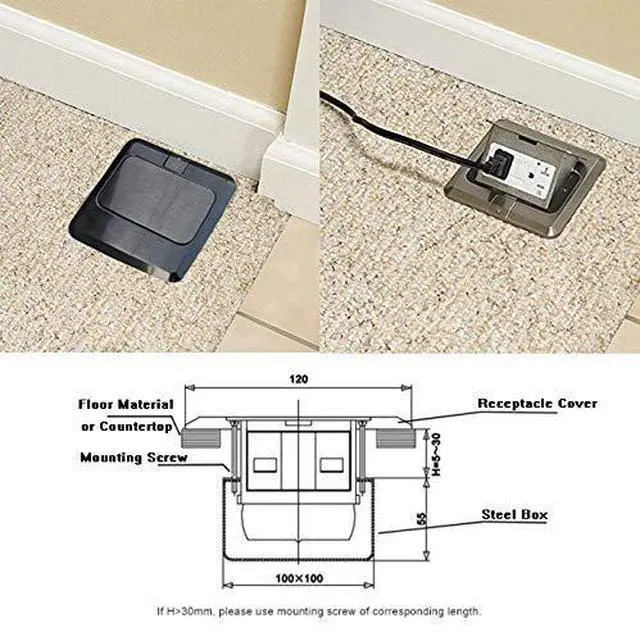 It can be installed in floor, countertop, deck, table, desk tops in kitchen, living room, office, public area, etc. Waterproof gasket features IP44 water rating.