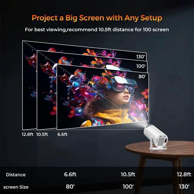 Stunning 4K-supported clarity: Movies projector with 200 ANSI lumens brightness, a 2000:1 contrast ratio, and 4K decoding support, this movie projector delivers vivid colors and crisp details on screens from 30" to 130". Perfect for immersive movie nights, intense gaming sessions, or professional presentations