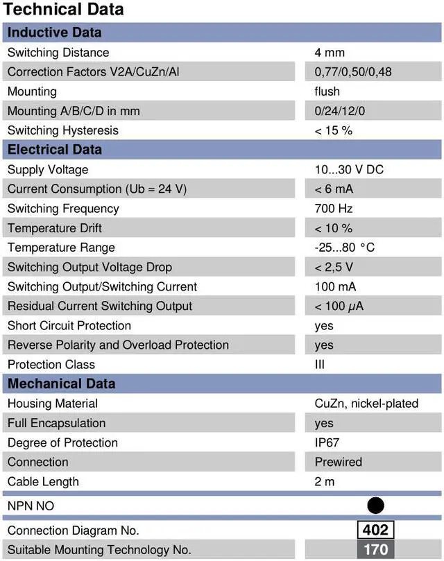 Wenglor Proximity Switch IB040BM37TB NPN New Housing Thread M12 Range 4 mm Mounting flush Output NPN Circuit NO Housing Length 37 mm Connection Cable, 3-wire, 2 m