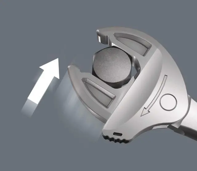 Many users wish to have a universal screw driving tool with the widest possible range of applications. It should be a single tool for multiple metric and imperial dimensions. It should automatically adjust to the different screw sizes. It should be safe to grab without damaging anything and allow for a high working speed. The continuous and parallel jaws replace several single spanner dimensions. The required size is automatically and continuously set when attaching the tool to the hexagon bolt or screw. The integrated lever mechanism securely clamps the hexagon screw or bolt between the jaws, which significantly reduces the risk of slipping or damage.