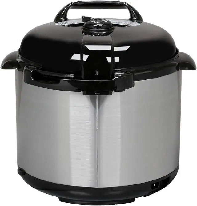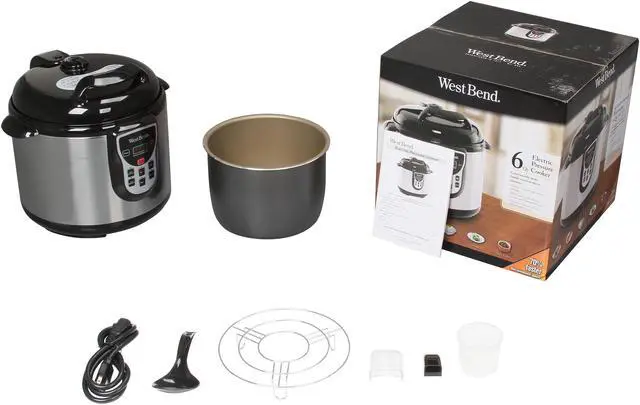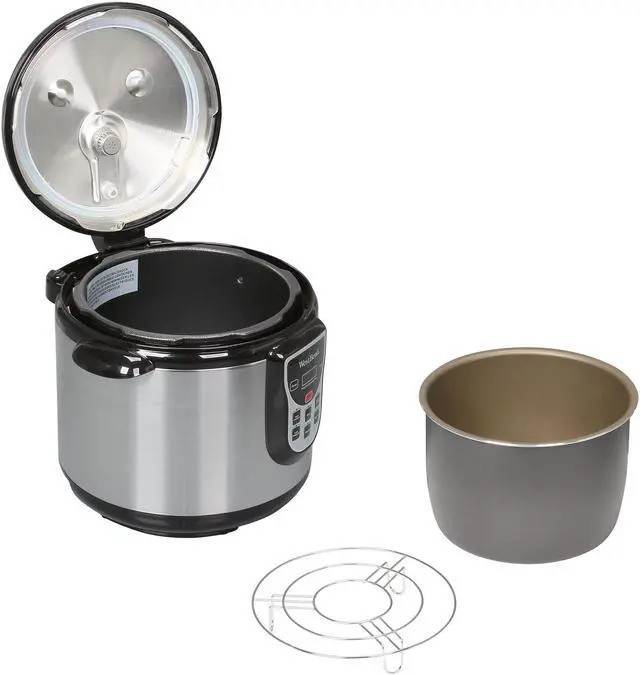 | Features | Save Time Save Money Save Energy Pressure cooking cuts cooking time by up to 70% of traditional meal prep methods. It seals in steam, reduces boiling temperature, and cooks hotter and faster while still retaining flavor and preserving those all-important nutrients. Grandma knew pressure cooking could do all of this, but grandma's pressure cooker didn't have our 7 built-in fail-safe safety features. 5 appliances in one eliminates the need for additional appliances and clutter in your pantry. This multi-cooker has settings for pressure cooking, slow cooking, steaming, rice cooking, and a brown setting that can be used to brown meats, saute vegetables, or even boil pasta! Enjoy delicious, home-cooked meals at your convenience; any meal, any side dish, prepared any way you prefer and ready any time you want with delayed start and automatic keep warm features. So much convenience packed into one attractive appliance. - Large, 6 Qt. non stick cooking pot - Easy-to-use "Touch Pad" control - Attractive brushed stainless steel finish - Includes cooking rack, rice measure, and serving spoon |