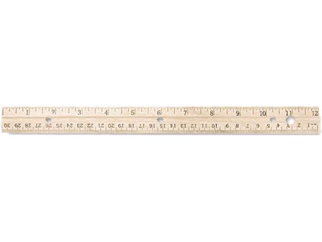Westcott 10702 Wood Ruler, English/Metric, 12", Three Hole Punched, Hang Hole, Lacquer Finish