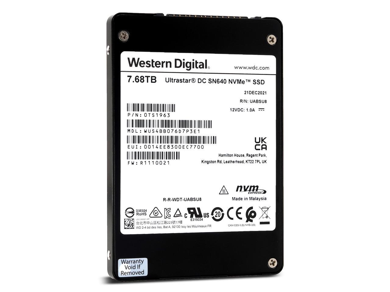 WD Ultrastar DC SN640 7.68TB PCIe Gen3.1 x4 U.2 NVMe 2.5" SSD (WUS4BB076D7P3E1)