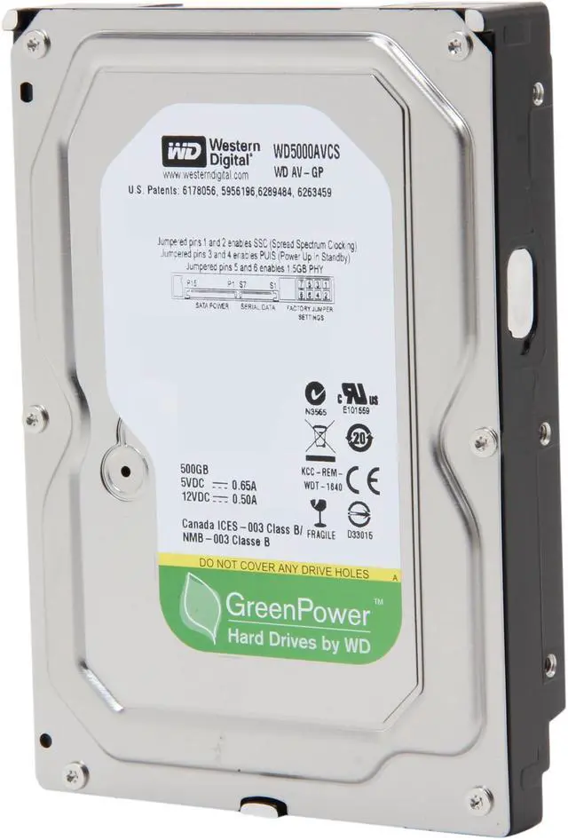 Western Digital Avgp 500Gb 5400Rpm (Intellipower) Sataii 7Pin 16Mb Buffer 3.5Inch Internal Hard Disk Drive