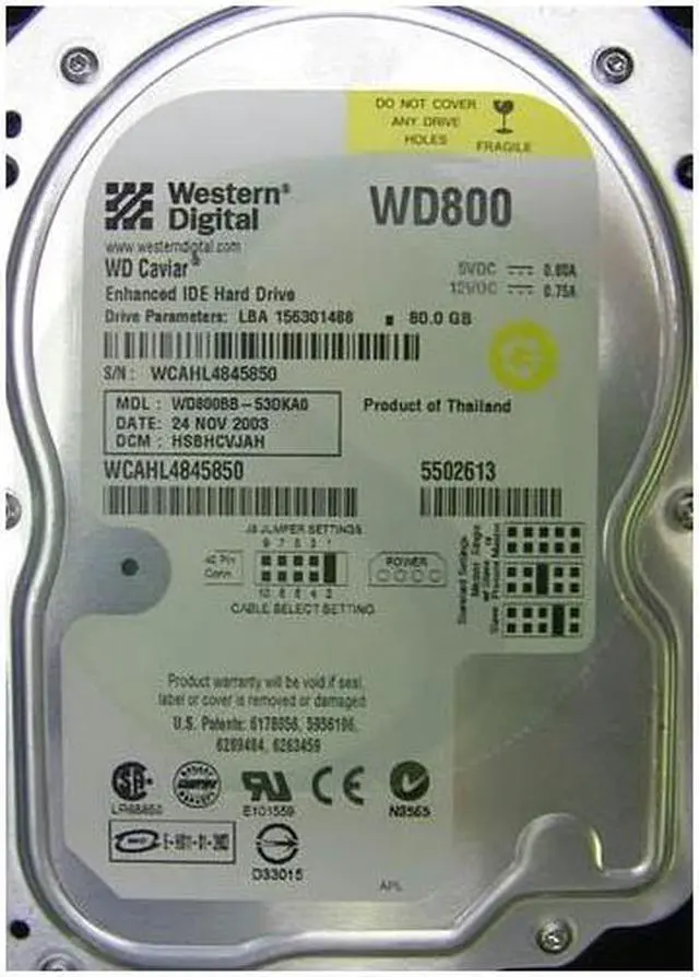 Western Digital WD800BB 80GB UDMA/100 7200RPM 2MB IDE Hard Drive
