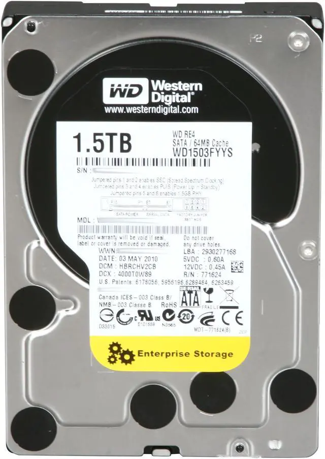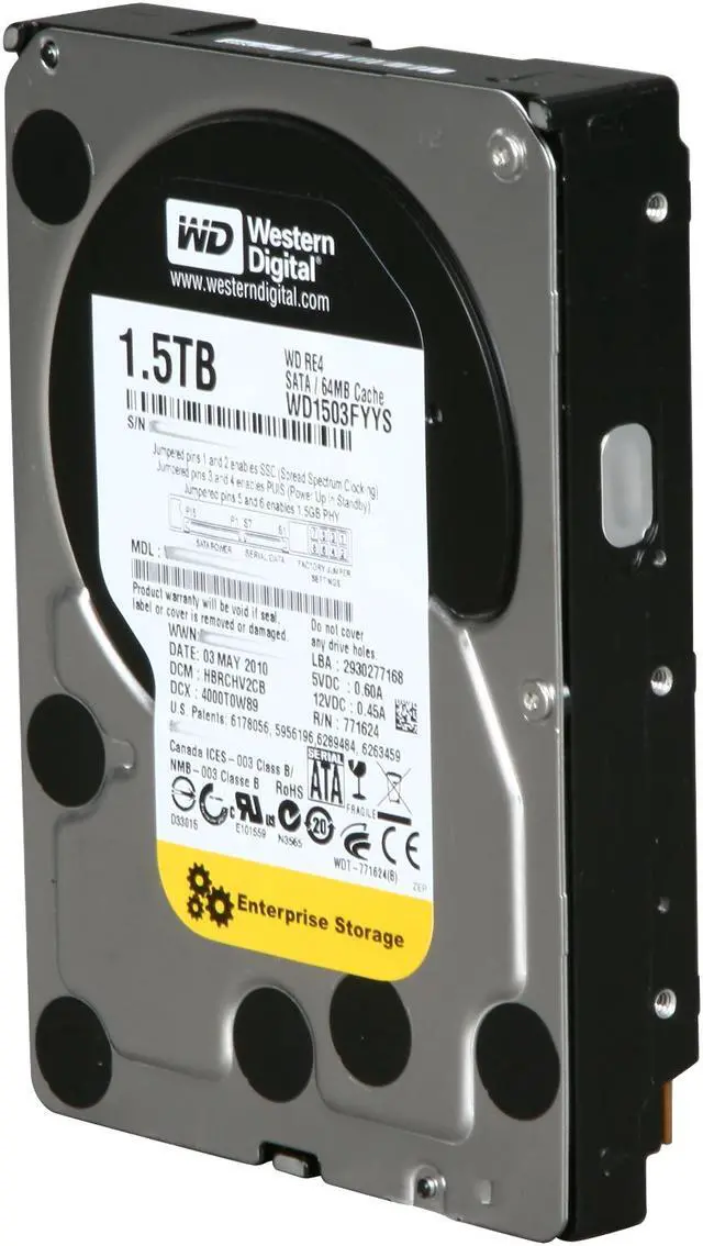 Western Digital WD RE4 WD1503FYYS 1.5TB 7200 RPM 64MB Cache SATA 3.0Gb/s 3.5" Internal Enterprise Hard Drive Bare Drive
