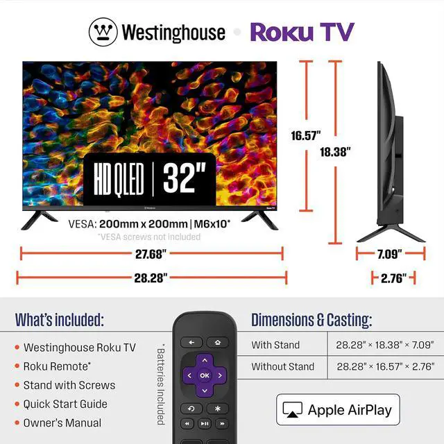The Full HD Quantum Dot QLED Roku Smart TV delivers stunningly rich and accurate colors with lifelike detail that outshines standard LED displays. Its bezel-free design creates a more immersive, cinematic viewing experience, while built-in Roku TV OS puts 350+ free live TV channels and thousands of top apps like Netflix, Prime Video, Disney+, Hulu, and YouTube TV right at your fingertips. Instantly cast videos, music, and photos from your phone with the Roku Mobile App or Apple AirPlay2, and enjoy seamless connectivity with 2 HDMI (ARC), USB, Composite, Optical Audio, and Bluetooth—making it the perfect hub for streaming, gaming, and entertainment.