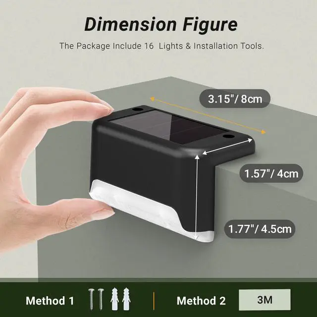 Widely used: Outdoor solar stair lights are perfect for lighting stairs, fences, decks, pathways, gardens, front doors, and also suitable for lighting backyards, driveways, garages, outdoor walls, and more