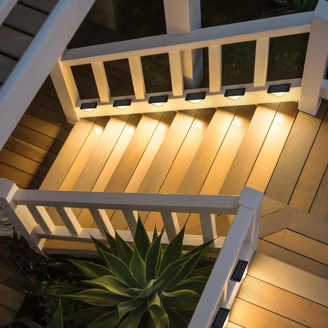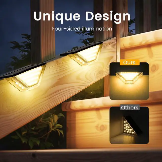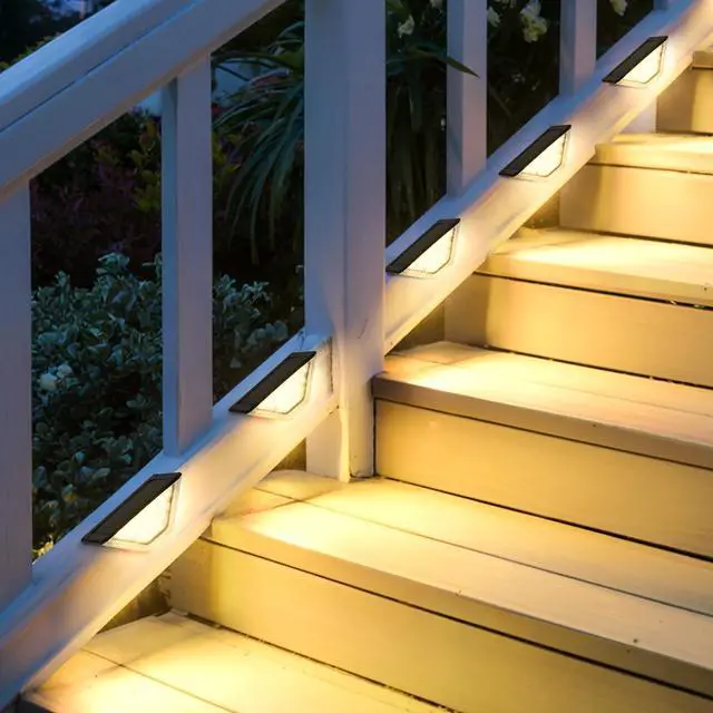 Light Up the Entire StaircaseCompared with single-sided illumination solar stair lights, the four-sided illumination design covers a wider glowing range, making your steps look more complete and brighter.