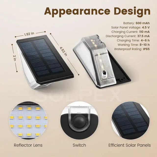 Durable ABS Material & WaterproofMade from high-quality ABS material, the solar step lights for outside feature a press-type waterproof switch and an IP65 waterproof rating, ensuring long-lasting durability and resistance to the elements.