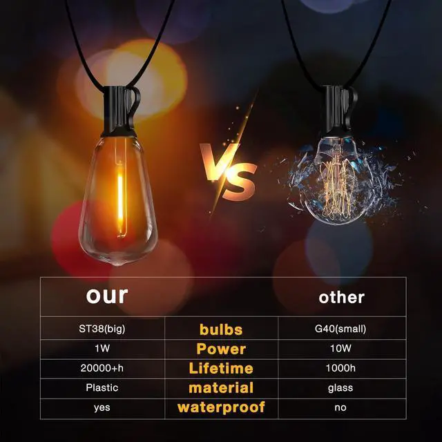 Widely Used: Our construction string lights are the perfect decorative lights for patio, porch, backyard, balcony terrace, garden, Bistro, pergola, gazebo, tent, market, cafe, wedding, Christmas tree, party, awning, apartment, marquee, bedroom, camper, ramadan