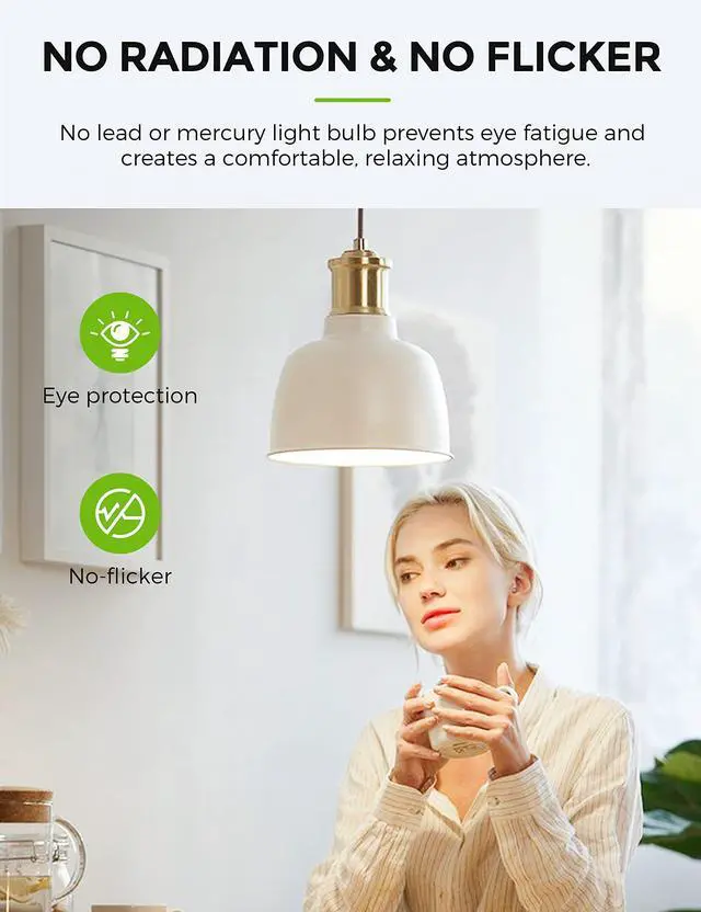 - No flicker. Daylight white 5000K with 2550 lumens LED, gives off a comfortable and clear brightness lighting, which brighten up the environment around you.