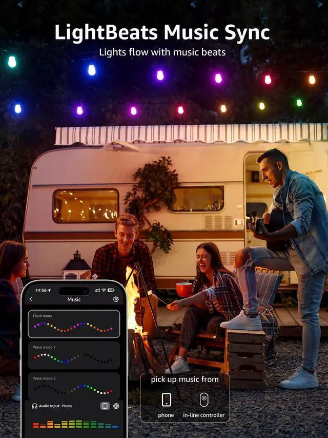 | Music Sync 2 | Pick up music from your phone microphone. (Keep the music sync page of the app alive and your phone screen on) |