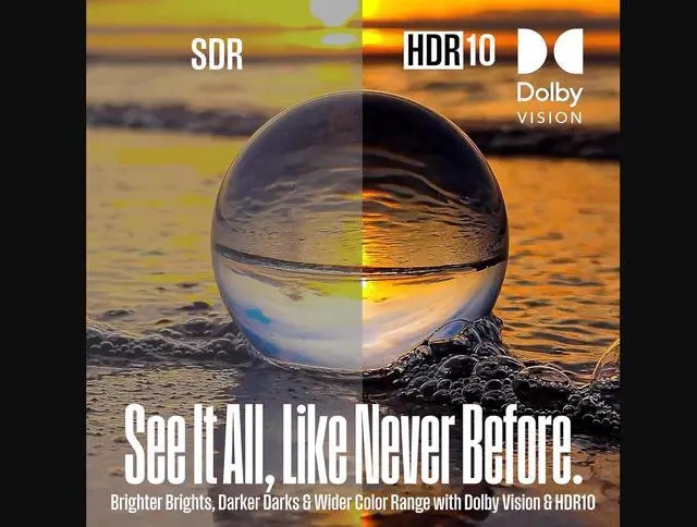 Dolby Vision , HDR10+ - Expanded contrast by reproducing brighter brights, darker darks and expanded the shades in between. Enjoy movies and 4k programs with more detail and emersiveness.