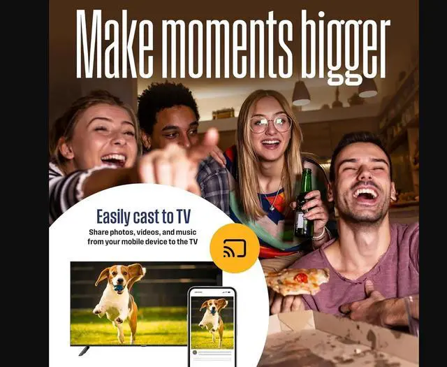 Cast Your Content & Entertainment – Sync videos, music or photos from your device to your TV using the free Roku Mobile App or Apple AirPlay2.