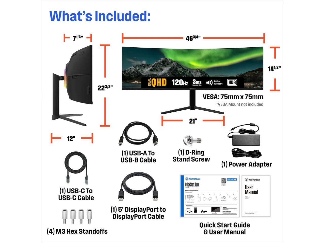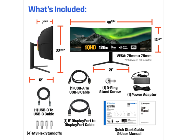 Westinghouse 49" 120 Hz VA VA UWQHD Gaming Monitor FreeSync Premium, G-Sync Compatible NTSC 85%, sRGB 95% DisplayPort, HDMI, USB 3.0, USB Type C WC49BX6250