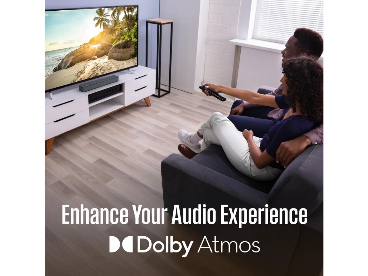 - 2.0 Compact 120 watt Soundbar: Offers superior audio quality, better dialogue clarity, and a more immersive listening experience compared to the down-firing speakers in a thin TV.