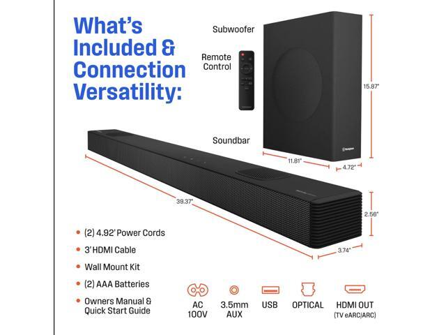 - Control Your Sound Bar with Your TV Remote: With the HDMI eARC input, easily connect the included HDMI cable to your TV and your sound bar will turn on / turn off with your TV remote.