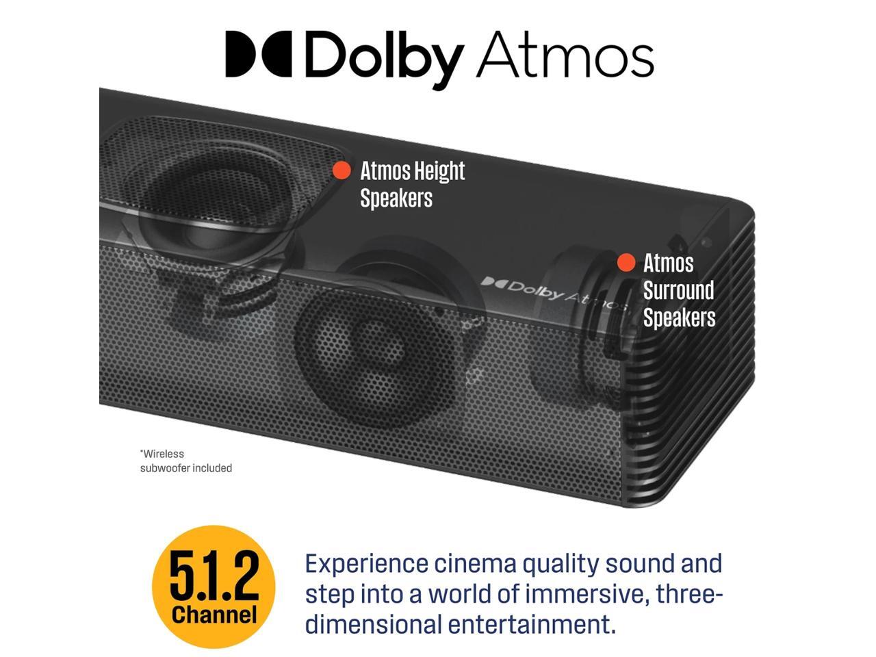 Westinghouse WS512AWS 5.1.2 Channel Dolby Atmos Soundbar with Wireless Subwoofer, Black