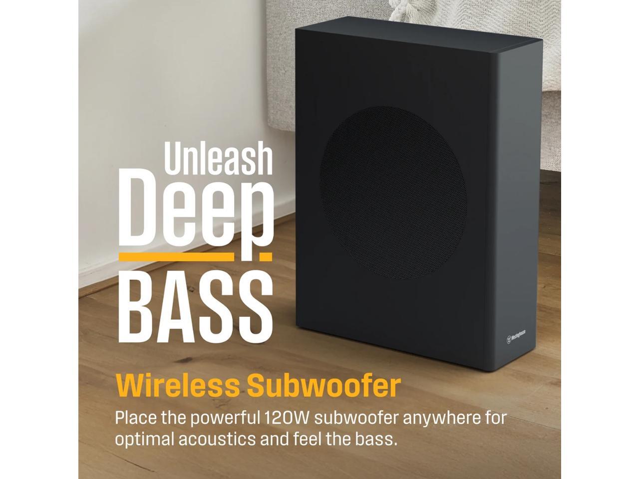 - 120 Watt Wireless Subwoofer - The included wireless subwoofer allows you to place it anywhere in the room, optimizing the acoustics and ensuring the best bass performance without being constrained by cables.