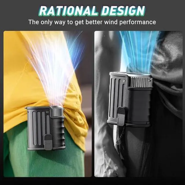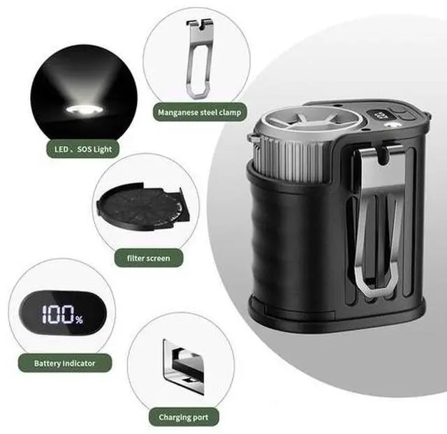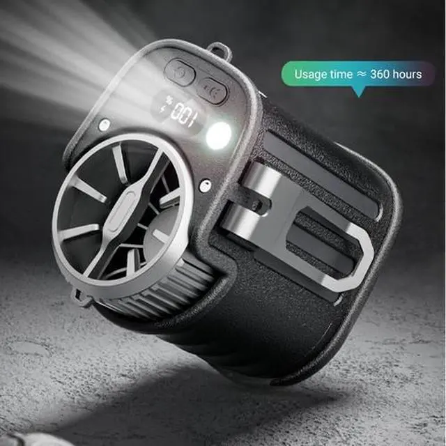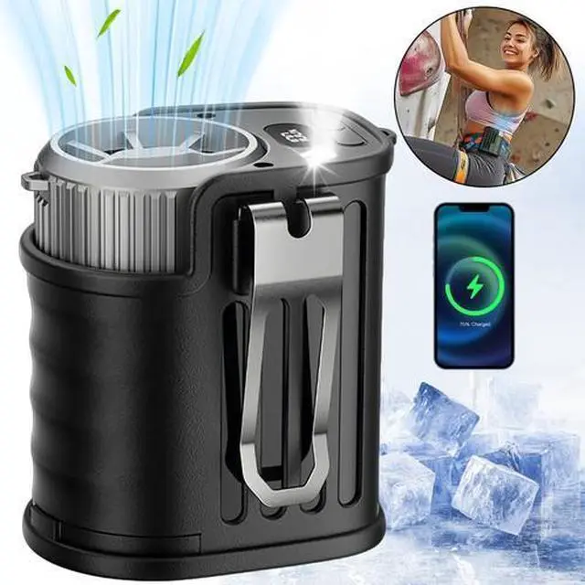 - [5-in-1 Multi-Functional Waist Clip Fan] This versatile fan functions as a waist fan, a desk fan, and a wearable neck fan. You can clip it onto your shirt, belt, or pants, or use a lanyard to hang it around your neck. Additionally, it serves as an emergency power bank, enabling direct phone charging so you never have to worry about running out of battery. The built-in LED light and SOS function not only provide long-lasting illumination but also assist with outdoor activities.