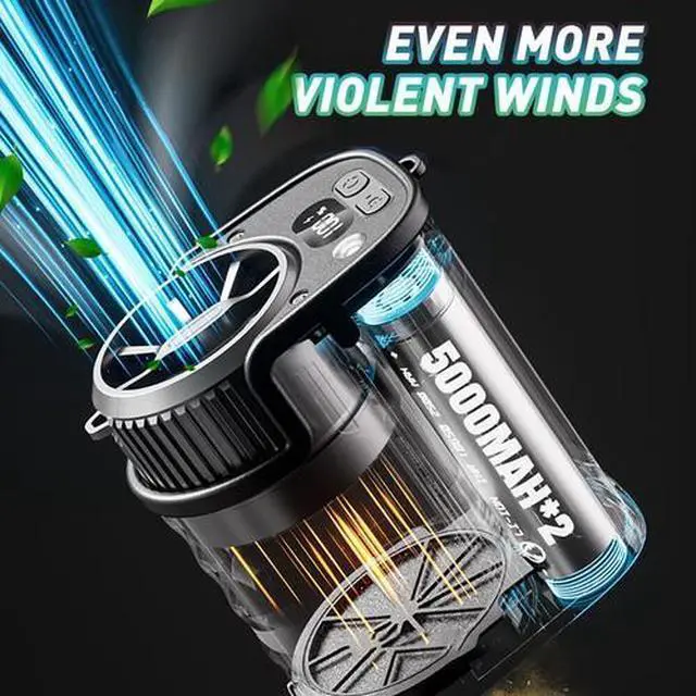 - [Long Battery Life] Equipped with a built-in 8000mAh rechargeable battery, this portable waist clip fan can run continuously for up to 20 hours on low speed, depending on the wind speed and LED lighting mode. It can also be used while charging. Featuring a built-in 5V-2A Type-C input and a 5V-2A USB output, this cordless fan allows for convenient charging and provides long-lasting cooling wherever needed.