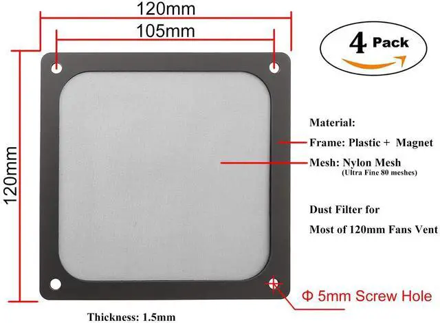 120mm Ultra Fine Nylon Mesh Filter with Magnet & Screws