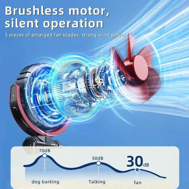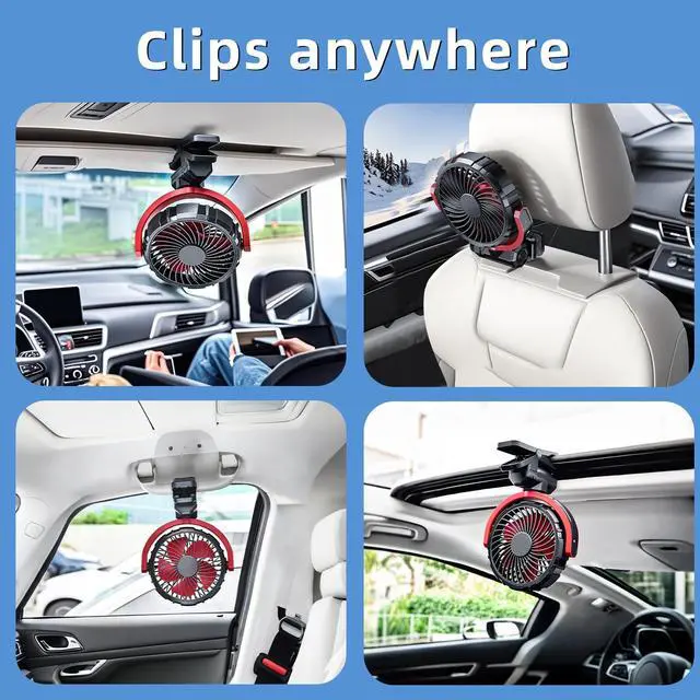 POWERFUL WIND POWER, QUIET OPERATION:The small clip on fans adopts the latest brushless motor technology and 5 high-performance ultra-thin fan blades, which can provide you with superb airflow at the lowest noise level (<30db) to keep the air in your car circulating. The clip on car fan won't affect your sleep or do anything.