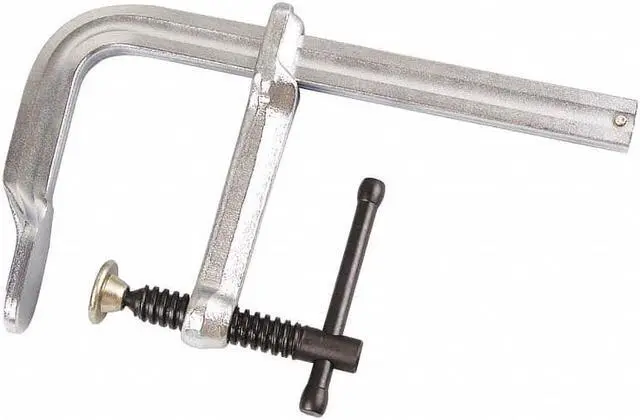 Bar Clamp, Handle Style Sliding T, Clamping Capacity 12 in, Clamping Force 1, 300 lb, Throat Depth 5 1/2 in, Jaw Pad Type Swivel, Sliding Mechanism Bar Slide, Bar Thickness 1/2 in, Application Woodworking, Bar Material Steel, Bar Width 1 in, Handle Length 4 3/4 in, Handle Material Steel, Jaw Pad Width 1 1/4 in, Spindle Diameter 7/16 in. This item has been restricted from sale in the following state (s): []