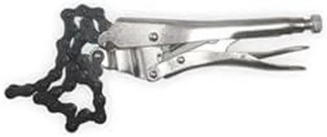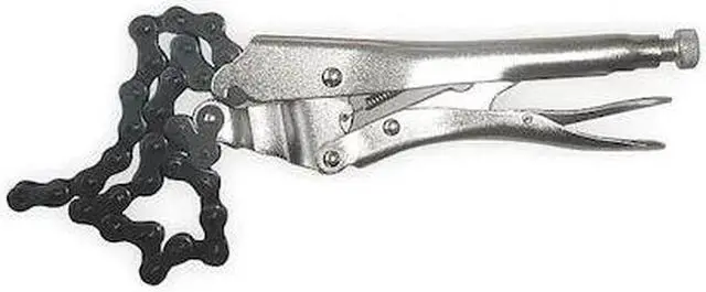 California Proposition 65: This product contains a chemical known to the State of California to cause birth defects or other reproductive harm. Locking Chain Clamps, Locking Chain Clamp, Max. Opening 3 3/8 in, Throat Depth 1 1/4 in, Clamping Force Not Rated, Nominal Clamp Size 9 in, Number of Pieces 1, Swivel Pad No, Tether Capable, Overall Clamp Length 8 3/4 in, Nickel Plated, Steel, Locking Mechanism Release Lever, Screw Mechanism Adjusts Clamping Pressure, ASME B 107.36 -2002. This item has been restricted from sale in the following state (s): []