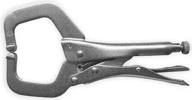 California Proposition 65: This product contains a chemical known to the State of California to cause birth defects or other reproductive harm. Locking C-Clamp, 6 In, Capacity 2 In, Throat Depth 1 1/8 In, Clamping Force 500 Lb, Locking Mechanism Release Lever, Screw Mechanism Adjusts Clamping Pressure, Pliers Length 6 3/8 In, Nickel Plated, Hardened Carbon Steel, ASME B 107.36 -2002. This item has been restricted from sale in the following state (s): []