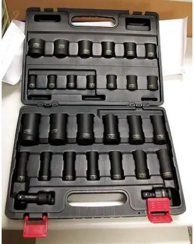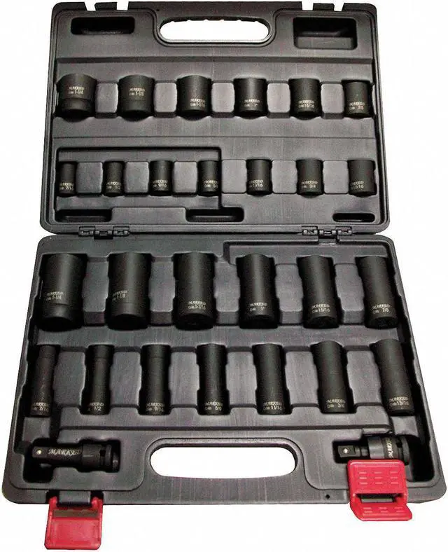 This set comes complete with twenty-eight pieces including an impact universal joint and a three-inch impact extension bar along with fourteen standard and deep sockets respectively. All items come neatly packaged in a dust-resistant plastic case measuring approximately three inches by twelve inches by seventeen inches (LxWxH). While drive tools are not included within this set, it's designed for use with half-inch drive types as per ASME standards. It should be noted that these sockets are not tether ready nor insulated but they're suitable for general approach work across industries such as electrical and transportation.. This item has been restricted from sale in the following state(s): []