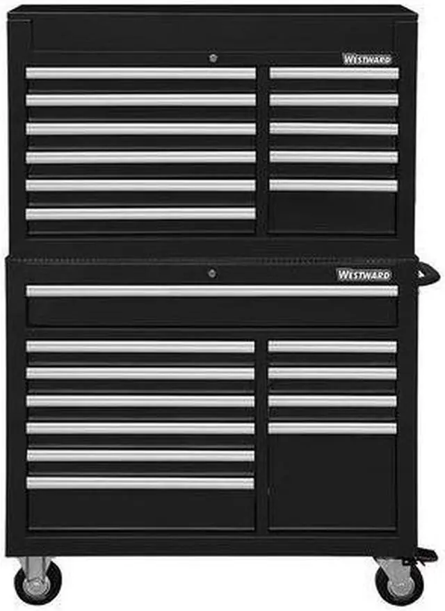 Tool Chest and Cabinet Combination, Heavy Duty, Powder Coated Black, 42 in W x 19 in D x 66 3/4 in H, Body Color Black, Body Finish Powder Coated, Body Gauge 20 ga, Body Material Steel. This item has been restricted from sale in the following state (s): []