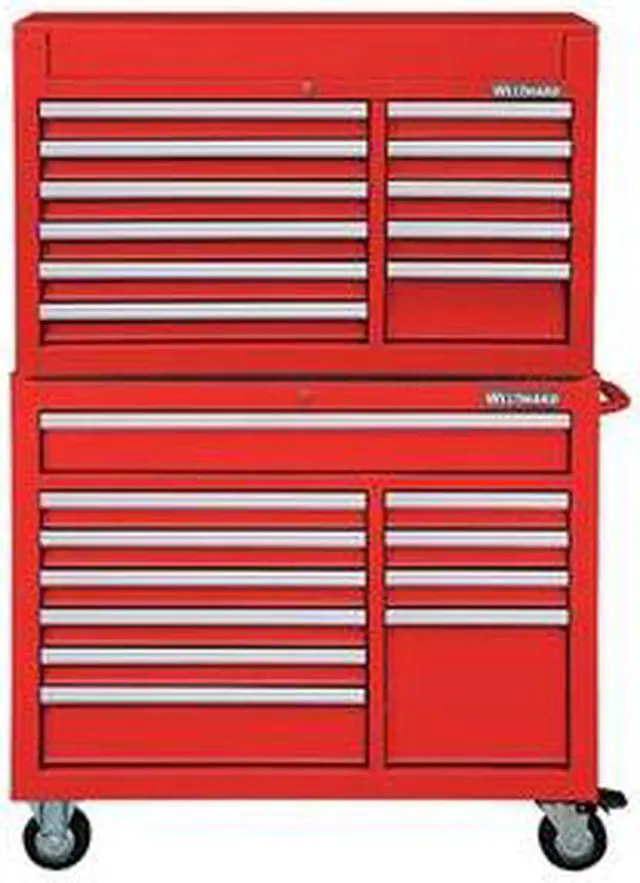 The Westward 7CX91 42"W Tool Chest and Cabinet Combination is a complete storage solution for your tools. The chest features 22 drawers with gas lift lids, while the cabinet provides an additional 60-1/2"H of storage space. The tool chest combo comes with aluminum drawer pulls that will resist corrosion. It has a powder coated finish that protects against scratches and rust. This tool chest has a 20 gauge body and 18 gauge drawers. Designed to be durable, this product is made of thermoplastic rubber caster wheels. Equip yourself with the Westward 42"W Tool Chest and Cabinet Combination so you can get your next project done in no time.