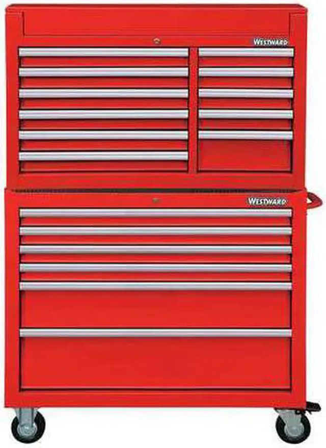 Tool Chest and Cabinet Combination, Heavy Duty, Powder Coated Red, 42 in W x 19 in D x 66 3/4 in H, Body Color Red, Body Finish Powder Coated, Body Gauge 20 ga, Body Material Steel. This item has been restricted from sale in the following state (s): []