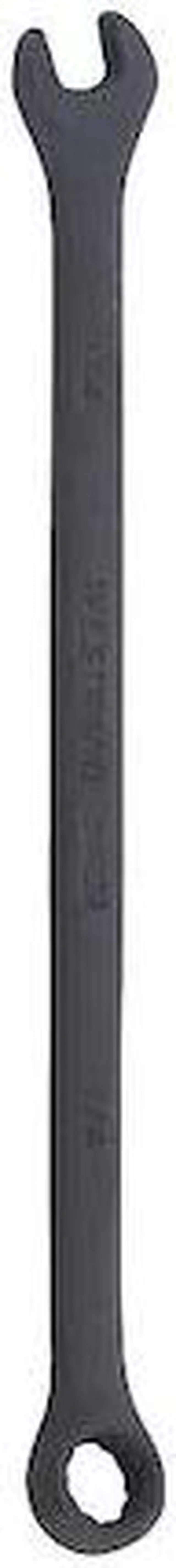 California Proposition 65: This product contains a chemical known to the State of California to cause birth defects or other reproductive harm. Combination Wrench, Alloy Steel, Black Oxide, Head Size 1/4 in, Overall Length 4 7/8 in, Head Offset Angle 15 Degrees, Opening Angle (Deg. ) 15 Degrees, Offset, Head Thickness 3/16 in, SAE, Rounded