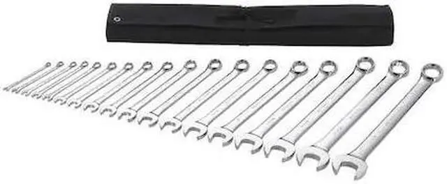 California Proposition 65: This product contains a chemical known to the State of California to cause birth defects or other reproductive harm. The Westward 54DF96 Combination Wrench Set, 18 Pieces, 6 Pts is a professional-grade set of tools that are essential for any project. It comes with an offset angle of 15 degrees and features six-point wrenches. This set contains all alloy steel construction tools that are finished in chrome. The combination wrench measures 6" long, so it can reach into tight spots easily. The tool has a straight shape to give you better control when needed. The Westward 54DF96 Combination Wrench Set, 18 Pieces, 6 Pts offers the reliability and convenience you need for your projects.. This item has been restricted from sale in the following state (s): []