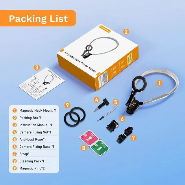 | Whats in the box | Anti-Lost Rope*1Prevent phone from falling, Camera Fixing Base *1 & Guide Card x1, Cleaning Pack*1 & Instruction Manual *1, Magnetic Neck Mount*1 & Camera Fixing Nut*1, Magnetic Ring*2 & Strap*1 (For more stable shooting) |